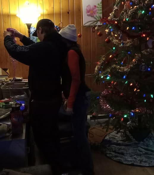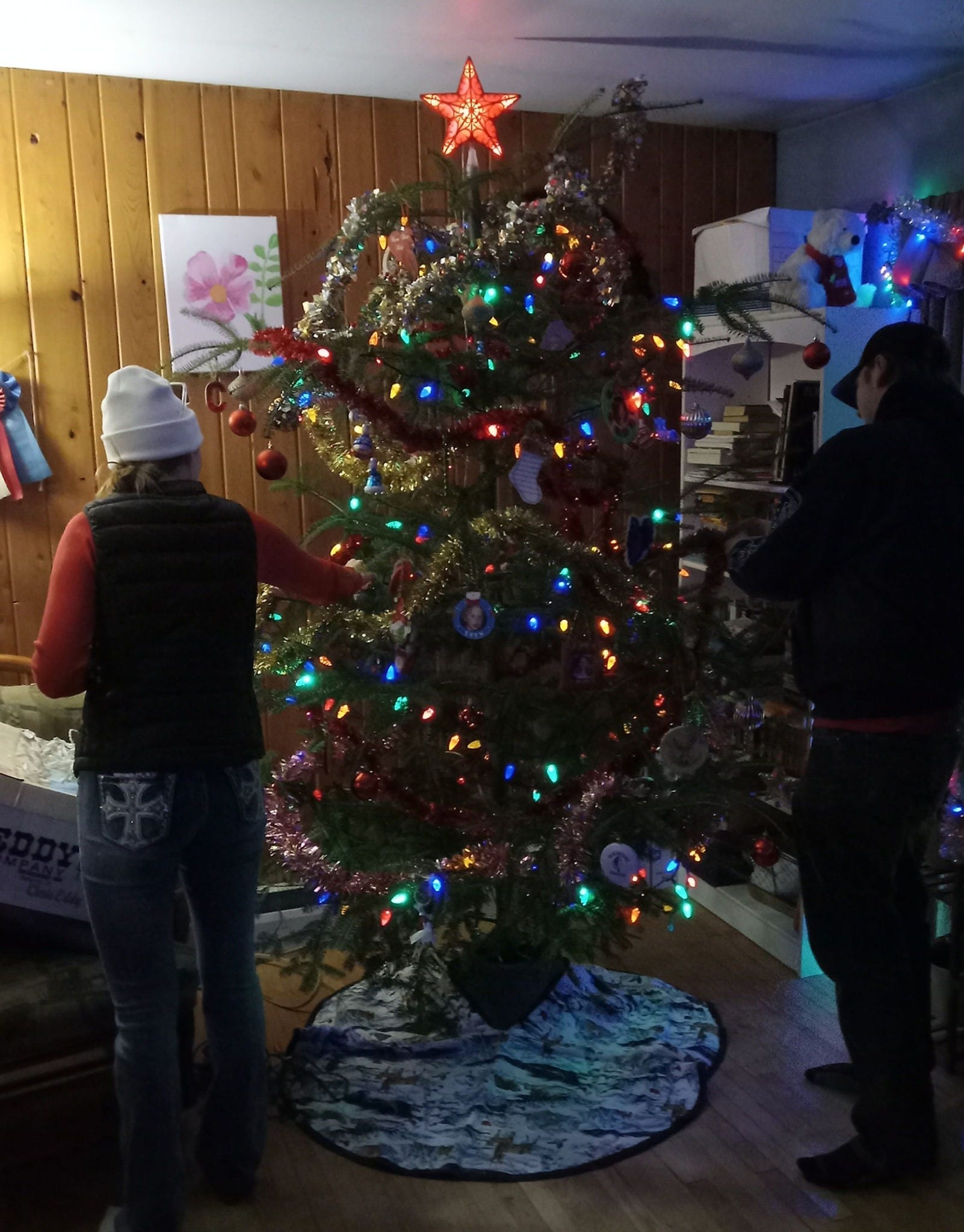 Every year, my husband and our daughter go out on our 40 acres and choose a tree to cut down, set up inside and decorate for Christmas.