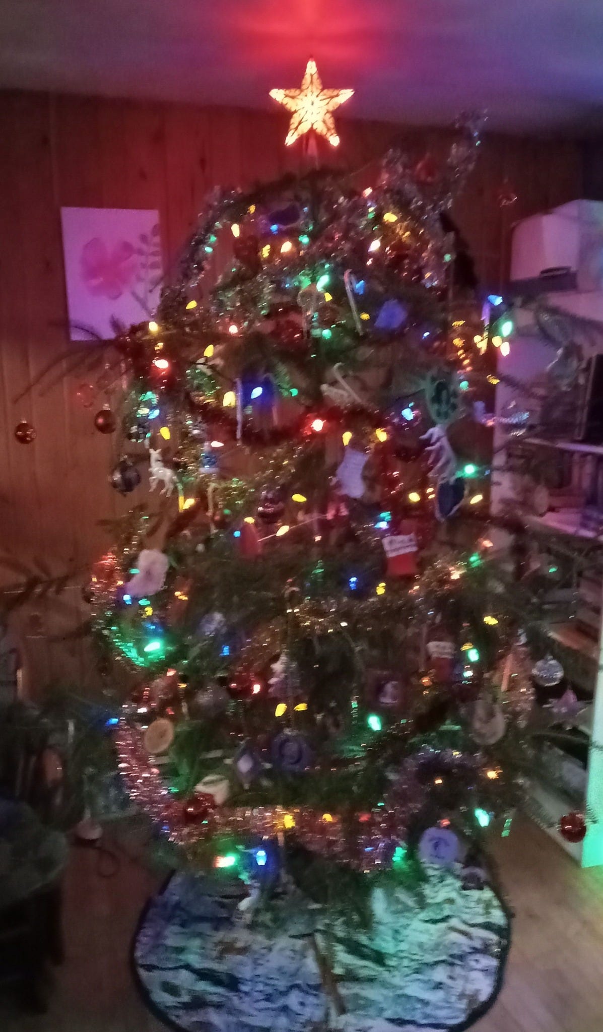 My Mom’s Christmas tree was always beautiful. A perfectly shaped specimen purchased from a lot which she decorated elaborately with tightly nestled lights, Downy snow to tip the branches and tinsel strung piece-by-piece. Us kids did hang a bunch of family collected and handmade ornaments. (I wouldn’t be surprised if she rehung them in “better” locations after we went to bed, though.)